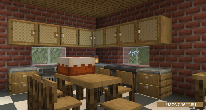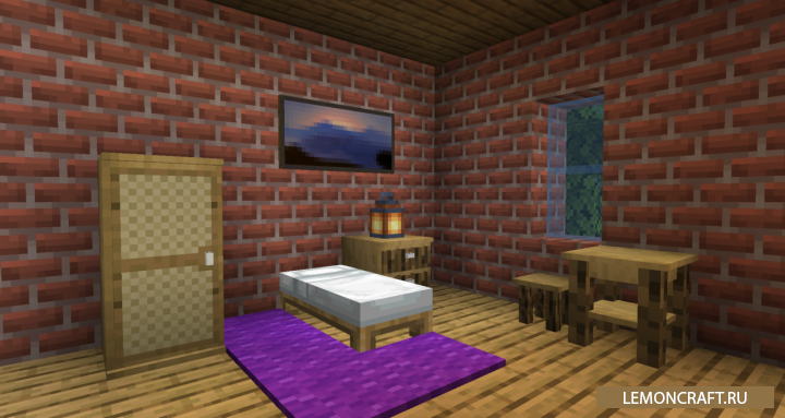 Мод на мебель Furnish добольшая модификация добавляющая в игру различную мебель: платяной шкаф, стулья, столы, кухонный шкаф и тумбочки. Вся мебель в моде изготавливается из одного вида древесины. Удобство данного мода заключается в том, что вы создаете всю эту мебель на одном мебельном столе, что исключает изучения большого количества рецептов.